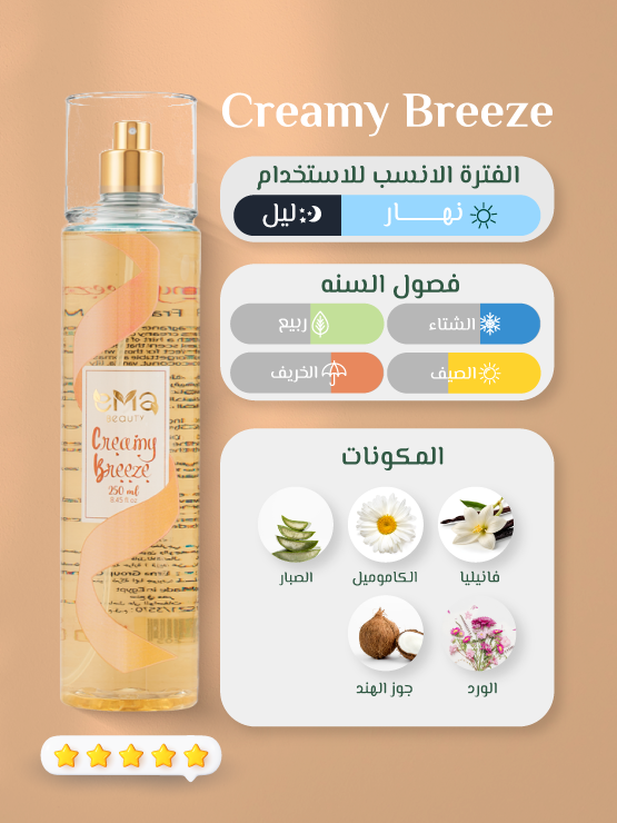 كريمي بريز هو بادي ميست بإصدار محدود، بتركيبة تجعل كل لحظة أكثر دفئًا وراحة.