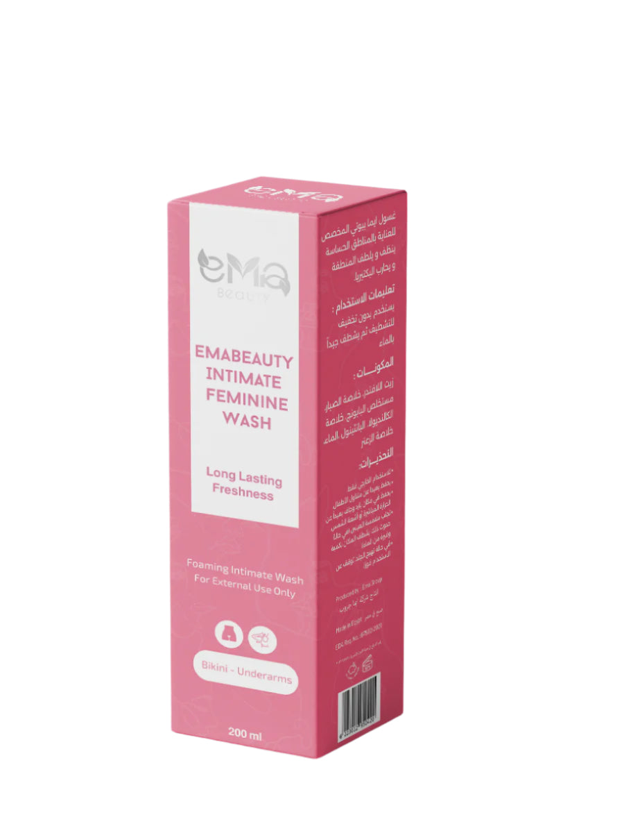غسول إيما بيوتي النسائي غني بخلاصة الكاليندولا، الزعتر، الألوفيرا، البابونج، وزيت اللافندر – تركيبة لطيفة تنظّف المناطق الحساسة بلطف، توازن البكتيريا الطبيعية، وتهدئ أي تهيج أو جفاف.